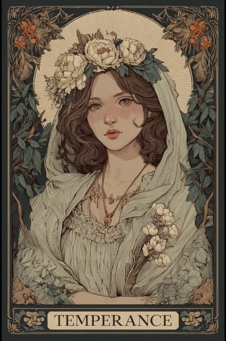 По този повод изтеглихме карта от Таро, за да чуем какво иска да ни прошепне този нов сезон. Картата, която се появи, е Умереност – символ на хармония, равновесие и алхимично съчетание на противоположностите.