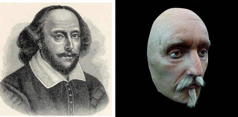 Образът на Уилям Шекспир е правен според посмъртната маска на великия поет и драматург.