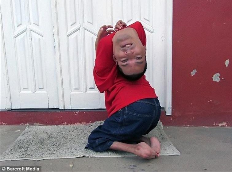 Клаудио страда от рядко заболяване - артрогрипоза, което прави всички стави в тялото му негодни, а главата му е обърната надолу.